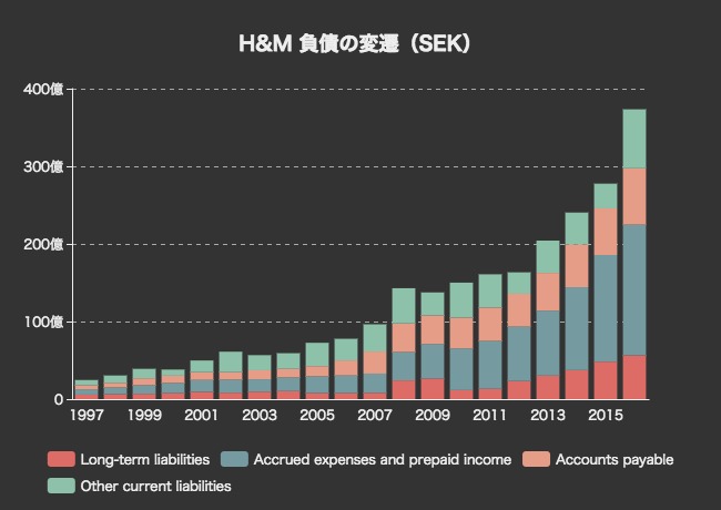 H&Mの負債の変遷をみてみます。