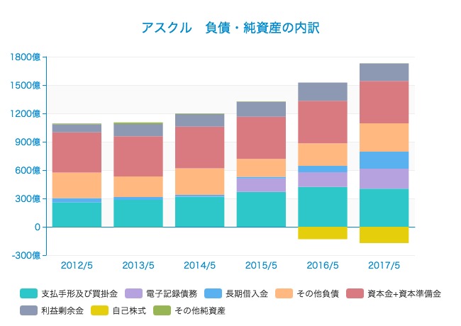 2017年5月20日時点において、資本金と資本準備金の合計449億円、利益剰余金185億円となっています。