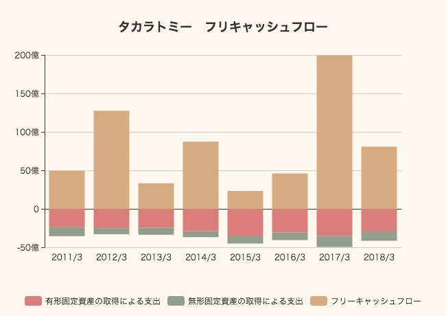 2018/3期の営業CFから設備投資額を引いたFCF(フリーキャッシュフロー )は80億円です。