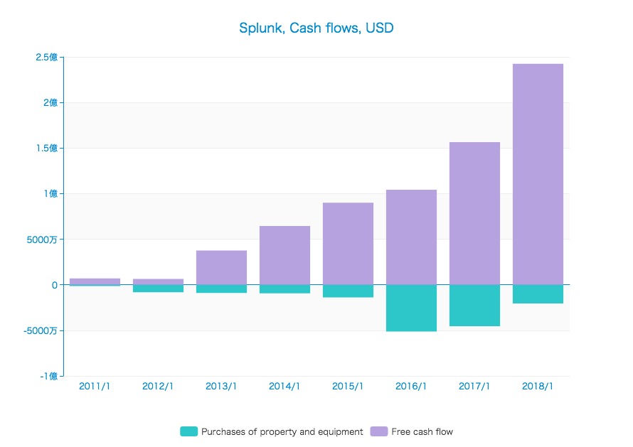 順調に事業を拡大しているSplunkですが、損益上はまだ赤字です。