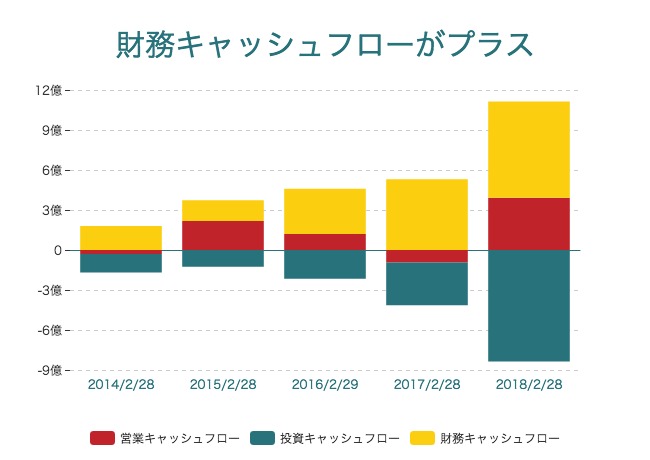気になるのは財務キャッシュフローがプラスになっている点です。