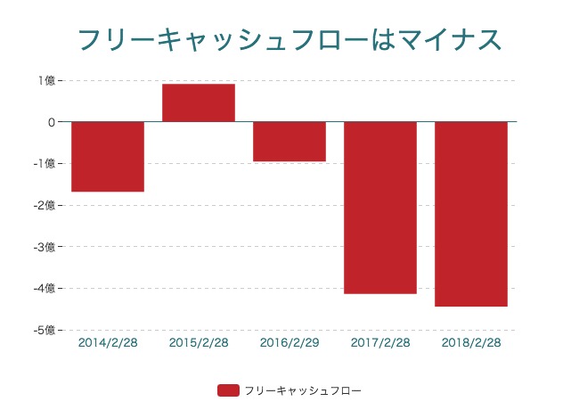 フリーキャッシュフローは2015年度を除いて大幅なマイナスとなっています。