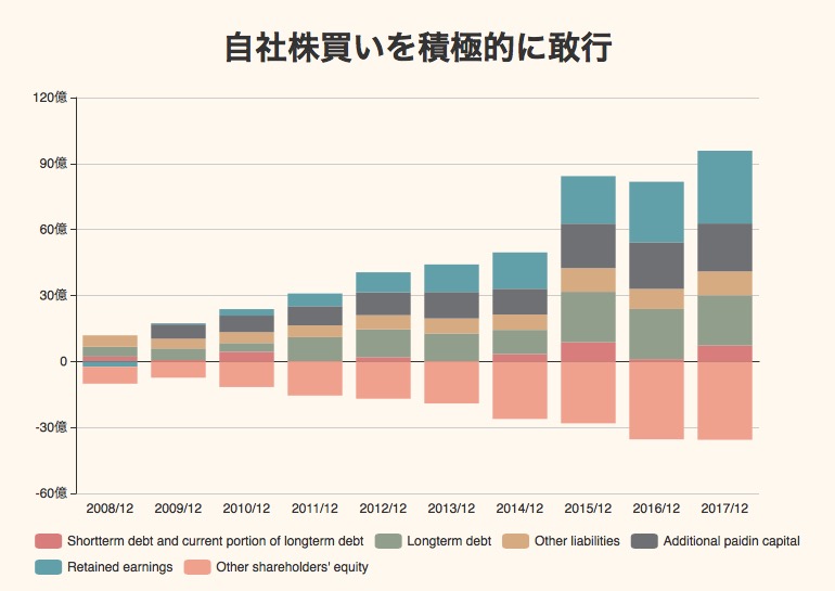 大きなマイナスとなっている「Other shareholders' equity」ですが、ほとんどが自己株式の買い戻しにより発生しています。