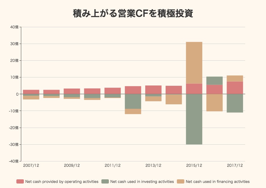 営業キャッシュフローは年々、着実に積み上がってきており、2017年には7.4億ドルのキャッシュを生み出しています。