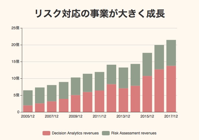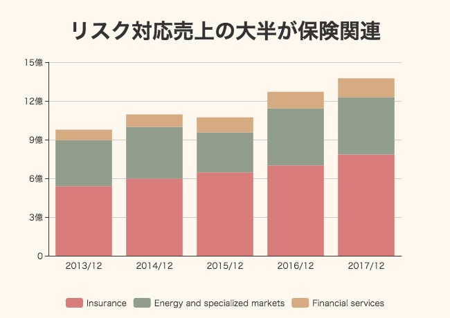ちなみに、成長のもととなっているリスク対応事業(Risk Assesment)の売上はその多くが保険関連となっています。
