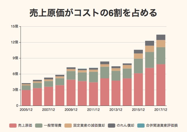 売上原価の総コストに占める割合が60%前後と高いのがわかります。