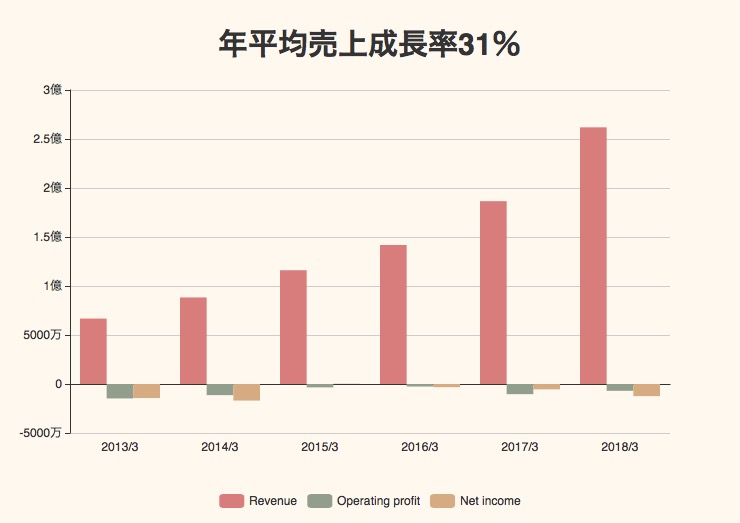 売上は以下のようにとても早いペースで拡大しています。(単位はドル、以降同様)