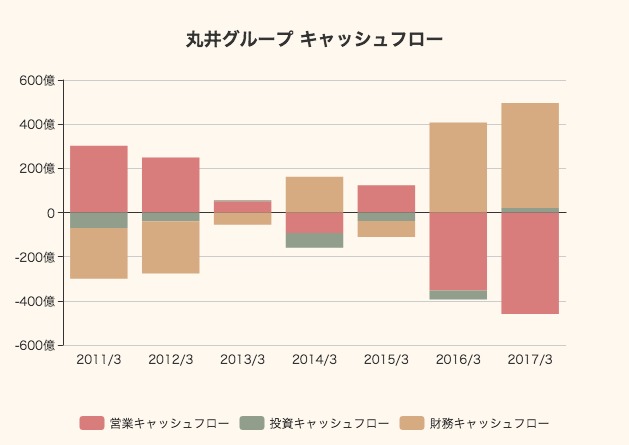営業キャッシュフローは460億円ものマイナスであり、事業からお金を生み出すことはできていないことになります。