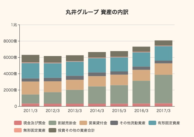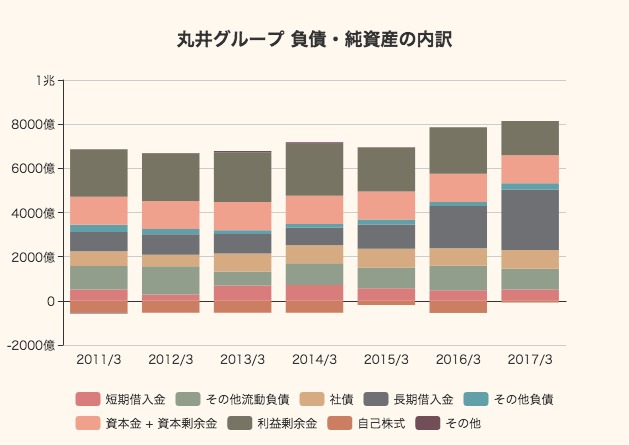 続いて、丸井グループの財政状態をバランスシートからチェックしてみます。