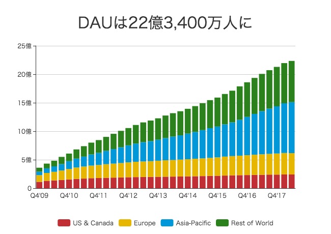 FacebookにはMAUベースで22億3,400万人ものユーザーがいますが、全員から月に2ドルずつ徴収しているのとほぼ同等の収益力です。