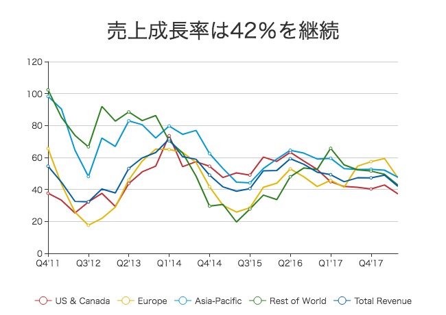 しかしARPUが拡大しているため、全体の売上はまだ42%増という急成長を続けています。