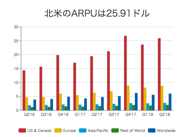 北米地域は驚異の25.9ドル、ヨーロッパは8.76ドル、アジア太平洋は2.62ドル、その他は1.91ドル。