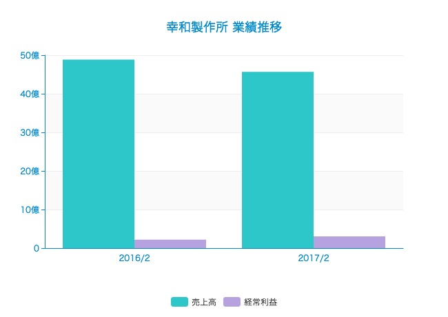売上は45億円と、減少気味。経常利益は3億円へと増加。
