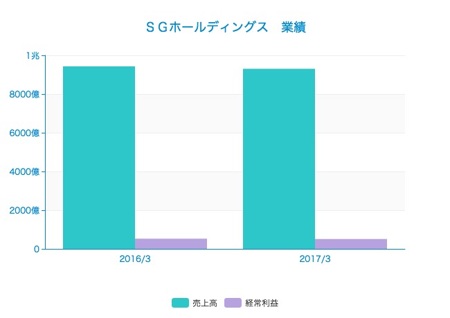 売上高の比較です。SGホールディングスは売上高9300億円と突出しているので、グラフから除いています。