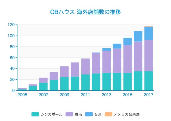 主にシンガポールと香港を中心に出店し、2017年には海外だけで117店舗に達しています。