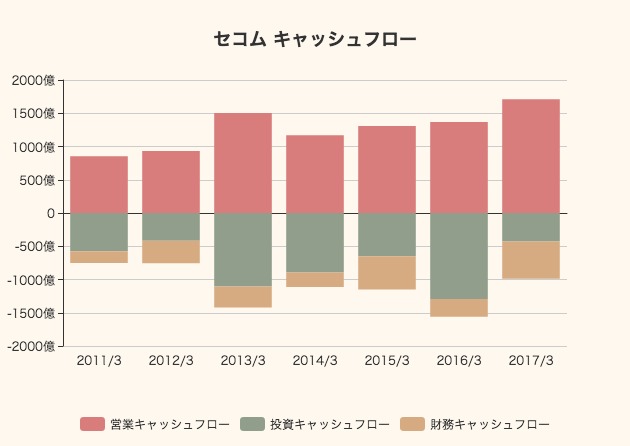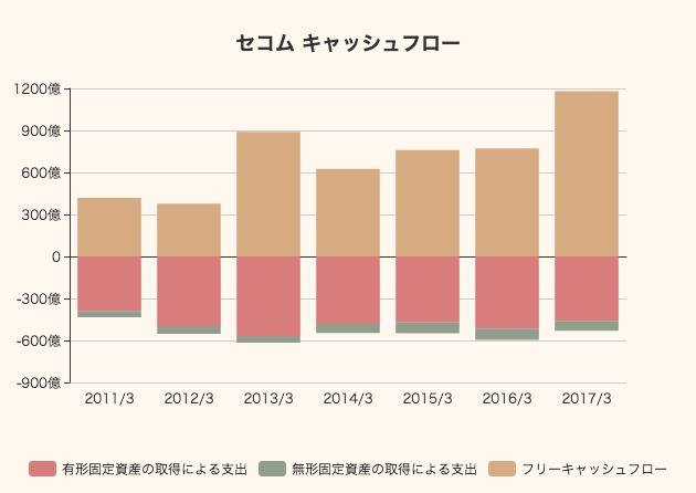 営業キャッシュフローは、年間1000億円以上を安定して稼ぎ出しています。