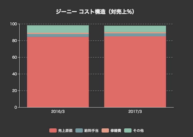 ジーニーのコスト構造を見てみます。