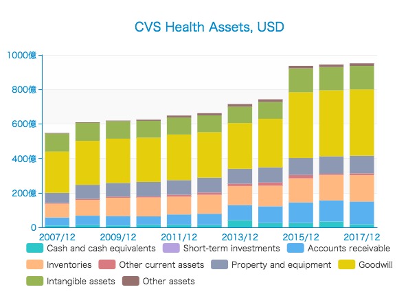 続いて、CVS Healthの財政状態をチェックしてみたいと思います。まずは資産の内訳。