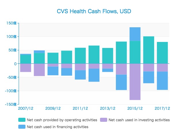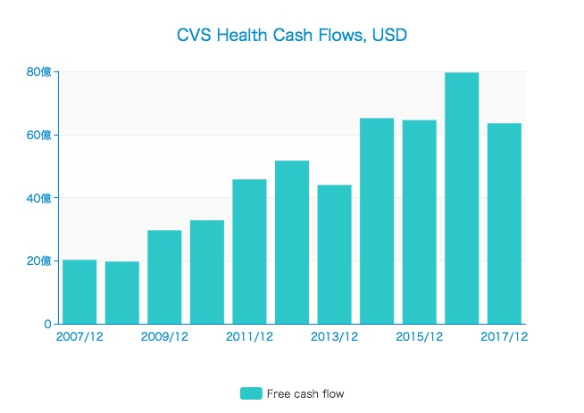 CVSの企業価値は960億ドルですから、毎年60億ドルのキャッシュを稼ぎ続けるのであれば、16年でモトが取れる数字になります。