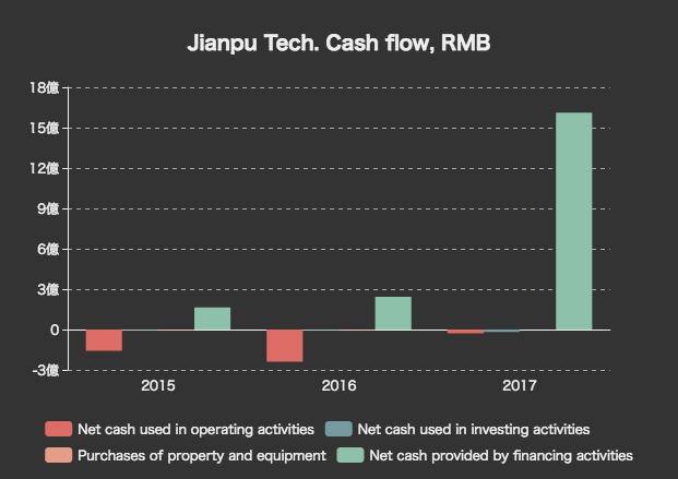 2017年には財務キャッシュフローが16億元ものプラスになっています。