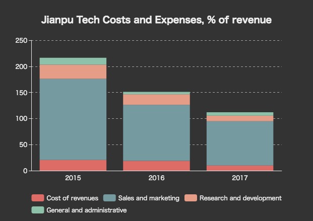 2017年にはセールス・マーケティング費用に売上高の85%を費やしています。