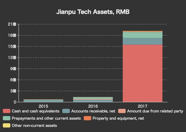 2017年末の総資産は19億元(320億円)であり、そのうち現金同等物が15.4億元(258億円)とかなりの割合を占めています。