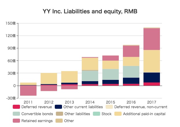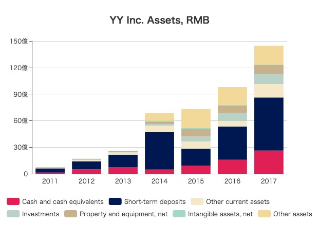 2017年末の総資産144.6億元(2422億円)のうち、現金同等物は26億元、短期デポジットが60億元で合計86億元(1440億円)と、手元流動資金は潤沢です。