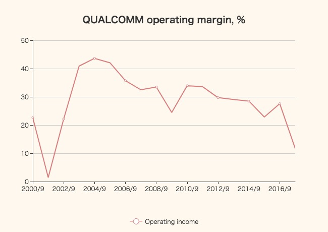 それでは、クアルコムの事業数値をさかのぼって見てみたいと思います。