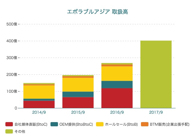 以上の4つの販路の取扱高は次のように推移しています(2017/9期は未公開)。