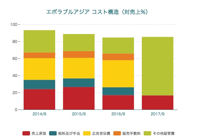一方、売上原価率は24%から17%と改善傾向。その他のコストは売上に対して同じくらいの比率で推移しています。