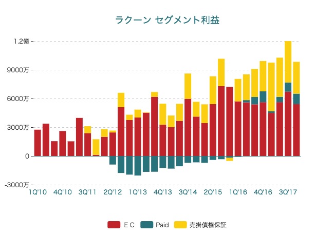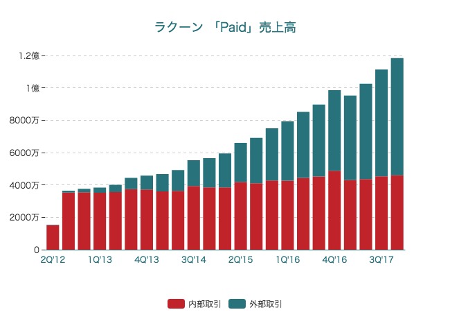 EC事業により安定して収益を稼ぎながら、Paid事業に投資してきたことがわかります。2016年ごろからPaid事業でも利益が出はじめています。