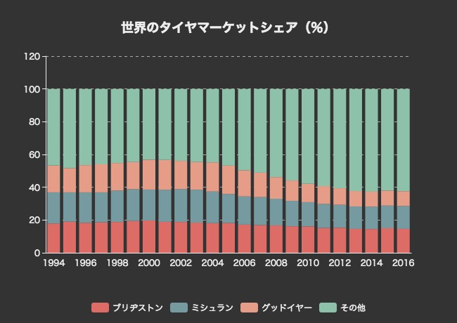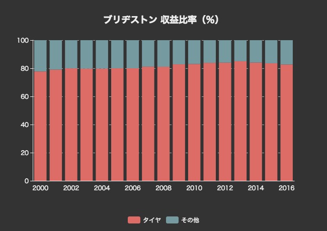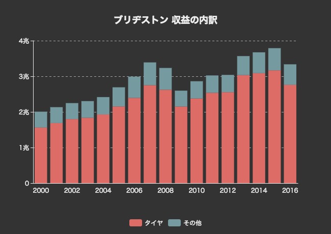 売上3.3兆円のうち、2.7兆円がタイヤ、5777億円がその他の売上となっています。