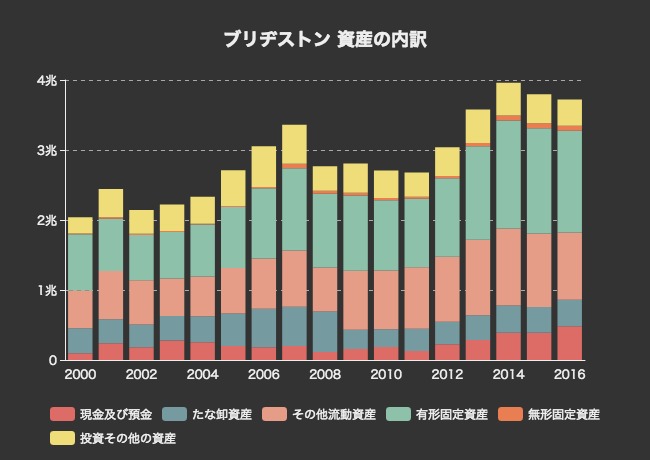 最後に、ブリヂストンの財政状況とキャッシュフローの状況です。まずは資産の内訳。