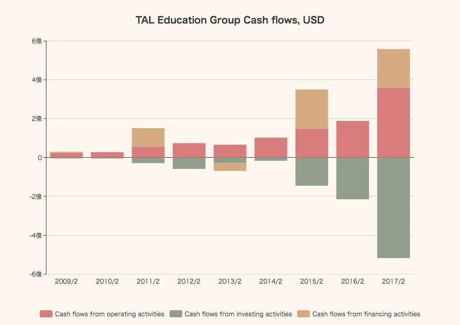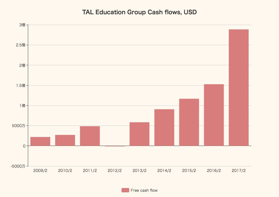 営業キャッシュフローは順調に増加してきており、2017/2期には3.6億ドルほどになっています。