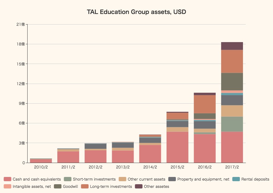 続いて、TALグループの財政状態についてチェックしてみます。まずは資産の内訳。