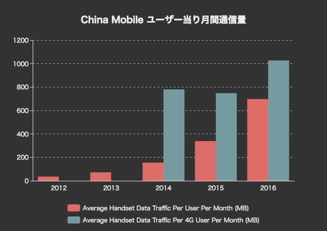 4Gは2014年の時点から800メガバイト近くとかなりの水準です。