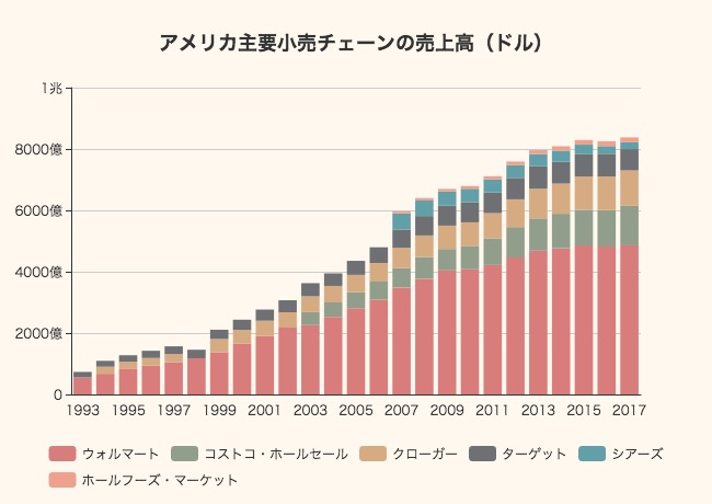 まずは、アメリカの大手スーパーマーケットチェーンの売上高の推移です。