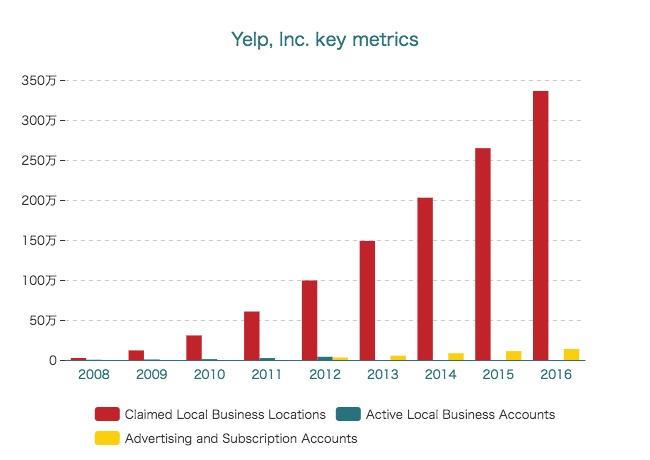 この巨大なマーケットからどのくらいのシェアを奪えるかがYelpの事業におけるポイントと言えます。