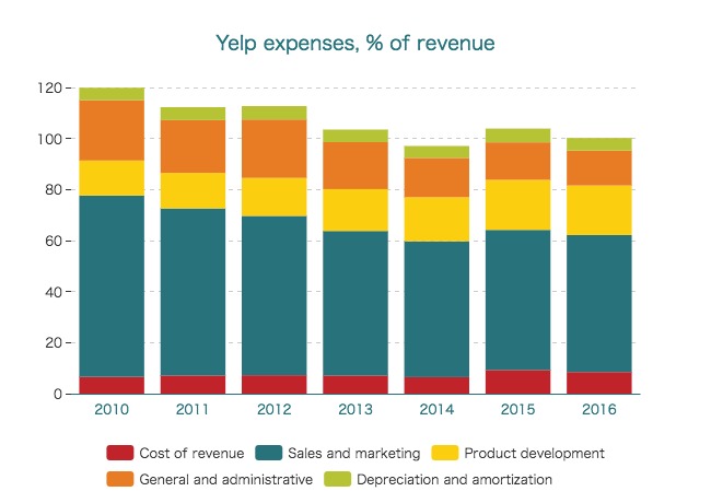 Yelpは安定的に利益を生み出していませんが、何にコストを費やしているのでしょうか?