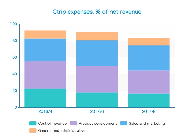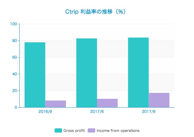 CtripはOTA(オンライン旅行代理店)事業を主に展開していますが、営業利益率が8%から17%へと大きく改善しています。内訳はどのようになっているのでしょうか?