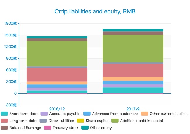 Ctripのバランスシートは総資産が3兆円近くとかなり大きく膨らんでいますが、どのようにして調達してきたのでしょうか。