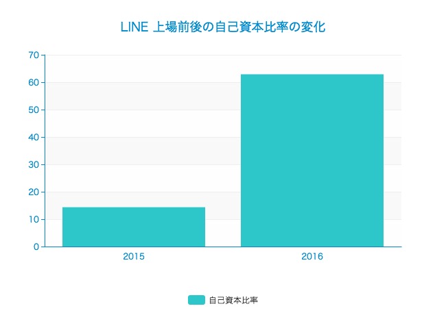 続いて、バランスシートから財政状態について紐解きます。LINEの自己資本比率を見ると、上場前後で次のように大きく変化しています。