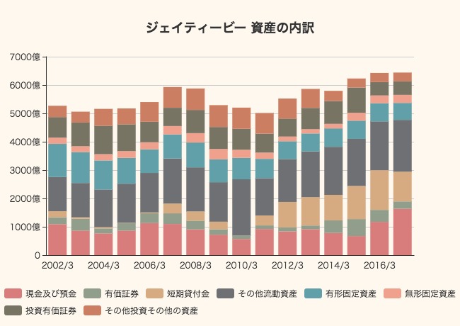 続いて、JTBの財政状態をチェックしてみます。まずは資産の内訳です。