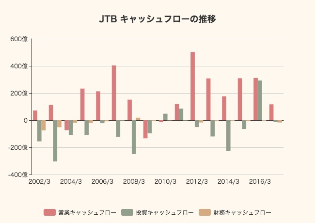あまり安定はしていませんが、多い年は500億円ほどの営業キャッシュフローがあります。