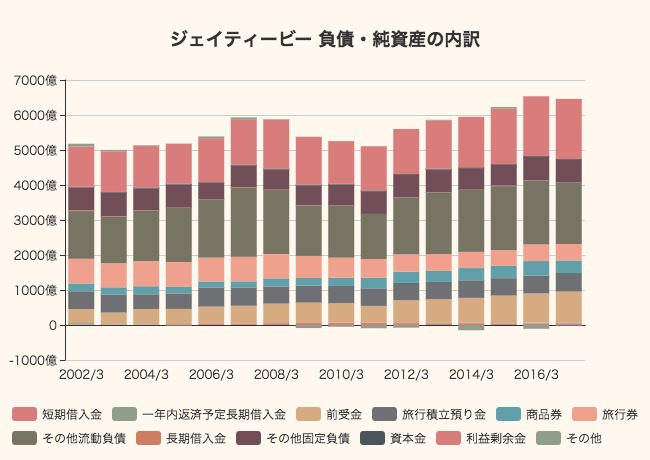 前受金や旅行積立預り金、商品券や旅行券などが流動負債として数百億円単位で計上されているのも特徴的です。