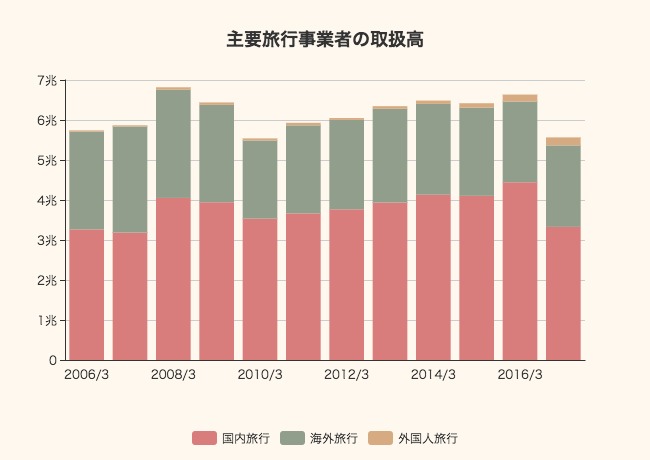 旅行事業が合計で1兆円前後と、収益のほとんどを占めています。