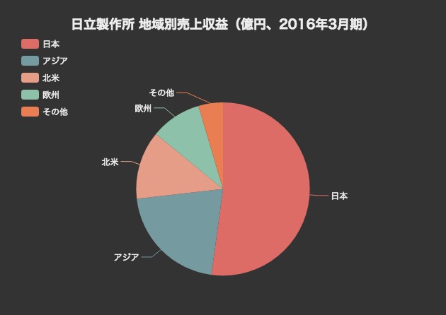 2016年3月期の日立製作所の売上収益は10兆円、継続事業税引前当期利益は5170億円だった。