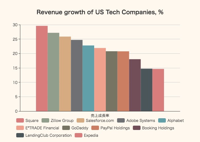 Square、Zillow Group、Salesforceの三社は成長率25%を超えています。