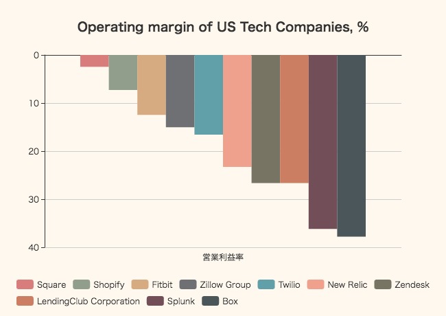 決済サービスのSquare(-2.45)とECプラットフォームのShopify(-7.3)は前年と比べると、順調に赤字を減らしてきています。