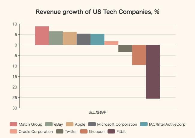 TwitterやGrouponは売上が微減、Fitbitは25%も減少する事態となっています。